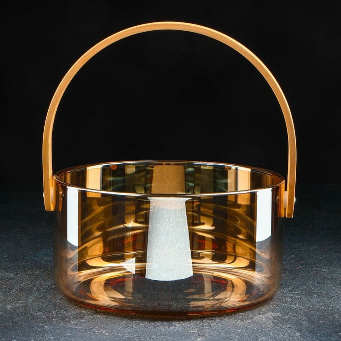 Ведро для льда выполнено из стекла, бамбукового волокна и силикона, что обеспечивает его прочность и долговечность.