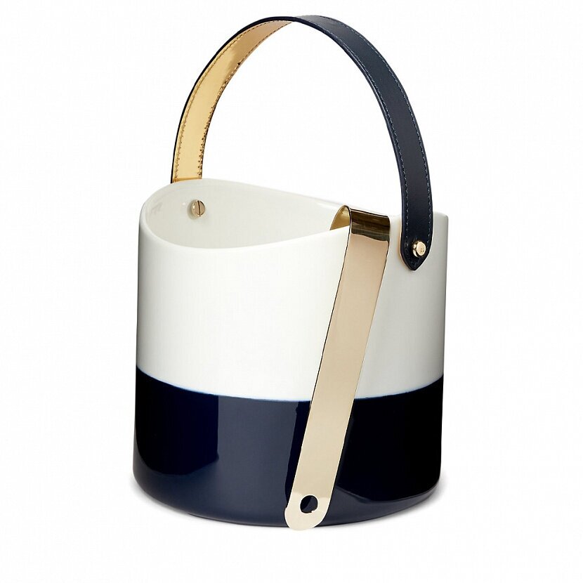 Ведро для льда Wyatt из глянцевого фарфора. Съёмная ручка из кожи придаёт изделию большей элегантности. В комплект входят щипцы из латуни. Предметы декора от Ralph Lauren Home — классика на все времена.