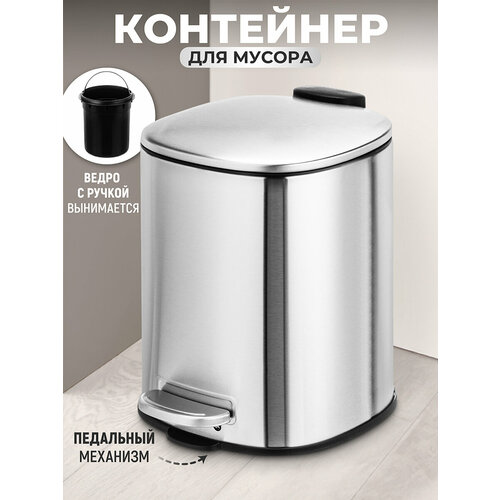 Контейнер для мусора с педалью от бренда ELCASA серебряного цвета предназначен для организации порядка в вашем доме, например, в комнате или на кухне. Урна оснащена крышкой. Крышка не пропустит запахов и не допустит выпадения мусора. Размер изделия – 21,5х17х23,5 см, объём – 3 литра. Высота с открытой крышкой 40 см. Внешняя ёмкость серебристого цвета выполнена из металла, имеет внутри чёрное пластиковое ведро размером 17х16,5х18 см и объёмом 2,3 литра. Крышечка открывается педальным механизмом. Педаль легко нажать – вам не потребуется прикладывать усилий. Компактная мусорка отлично послужит вам для уборки и наведения порядка – её легко взять с собой в нужную комнату. Подойдёт для уборки стола и полок, перебирания канцелярии и бумаг. Напольная мусорная корзинка найдёт своё место в любой части вашего дома. Поставьте её под рабочим столом или на кухне под раковиной, чтобы выбрасывать в неё кожуру, остатки еды или бумажные полотенца. Разместите мусорный бачок в туалете возле унитаза для утилизации гигиенических и косметических принадлежностей. Компактный мусорный бак станет прекрасным помощником для любителей рукоделия – можно держать под рукой и с удобством избавляться от излишков материала. Подойдёт для размещения возле мойки или офисного стола. За счёт компактного размера можно использовать как настольную мусорную корзину. Ведерко с универсальным дизайном будет стильным дополнением любого интерьера. Не рекомендуется применять абразивные моющие средства. Небольшая урна станет практичным дополнением вашего дома, офиса и дачи.