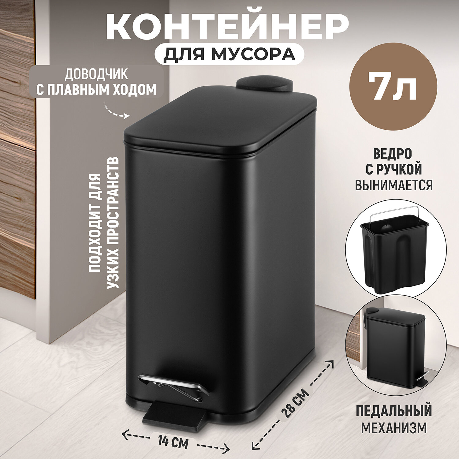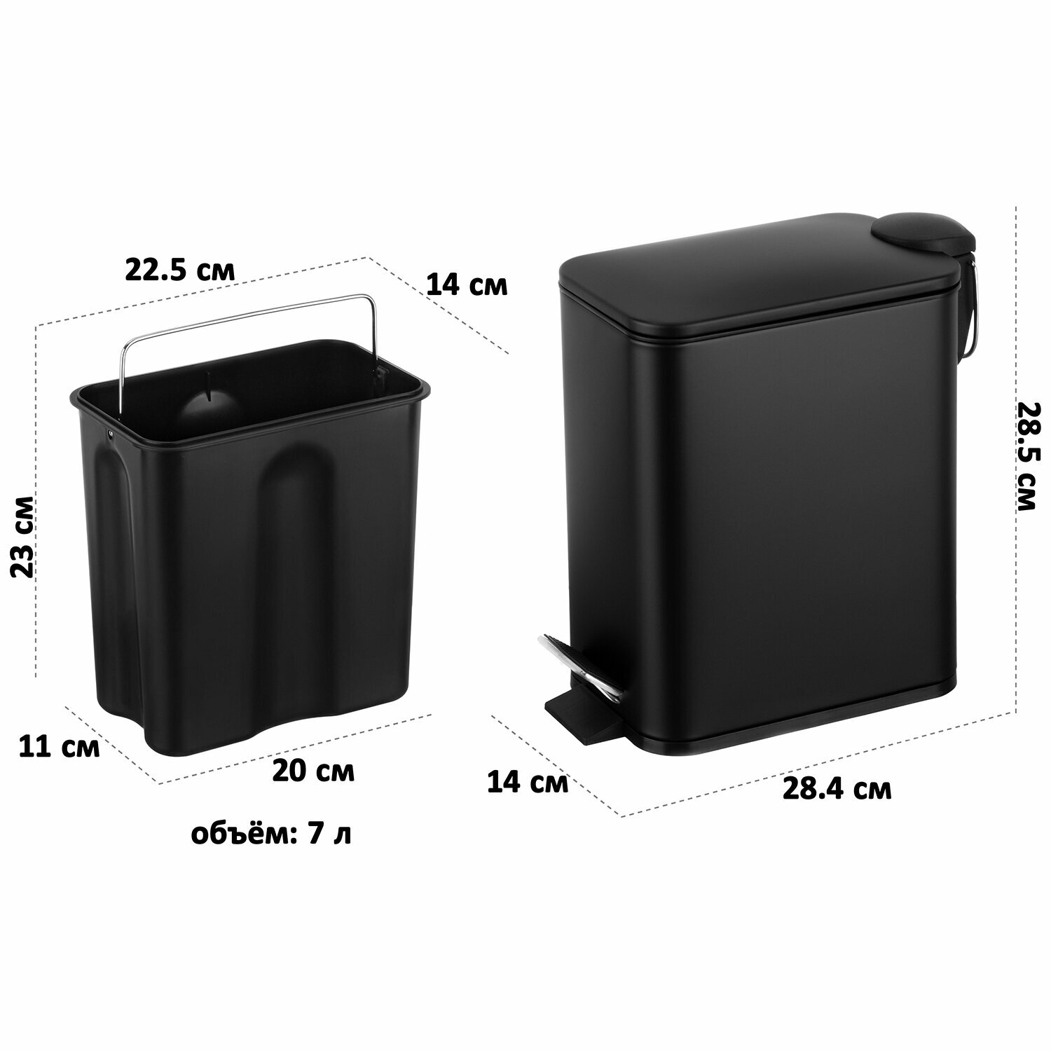 Ведро для мусора 7л El Casa, 28,4х14х28,5 см, с педалью, черное: сравнение цен, характеристики, фото, актуальное наличие и цены.