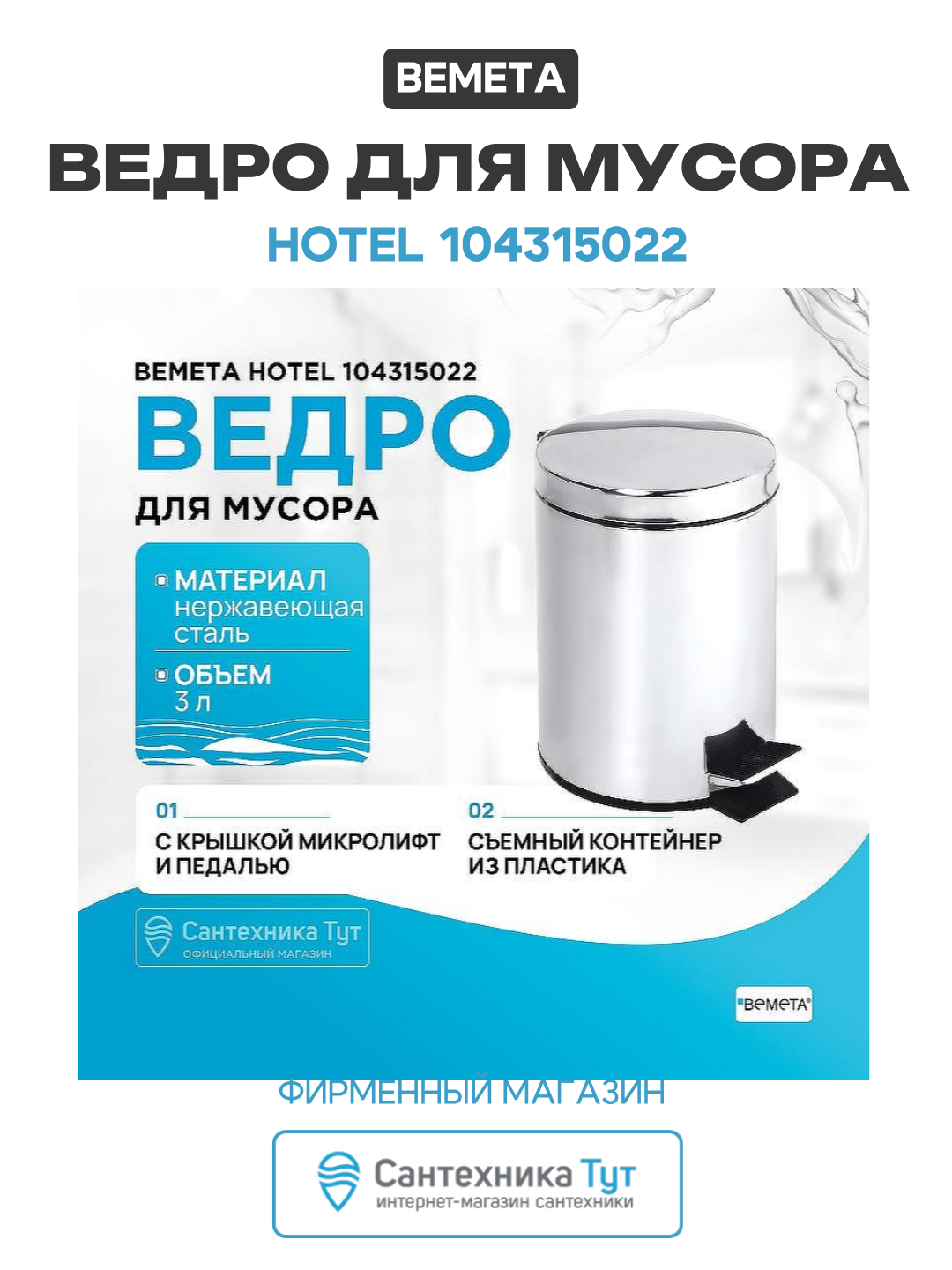Ведро для мусора Bemeta Hotel 104315022 Хром: сравнение цен, характеристики, фото, актуальное наличие и цены.