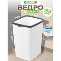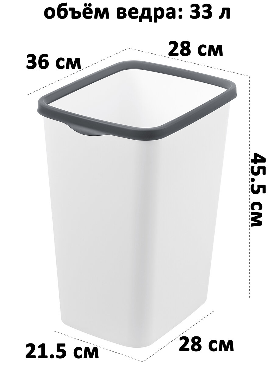 Ведро для мусора с фиксатором 33 л El Casa Тандем, 36х28х45,5 см, белый/серый: сравнение цен, характеристики, фото, актуальное наличие и цены.