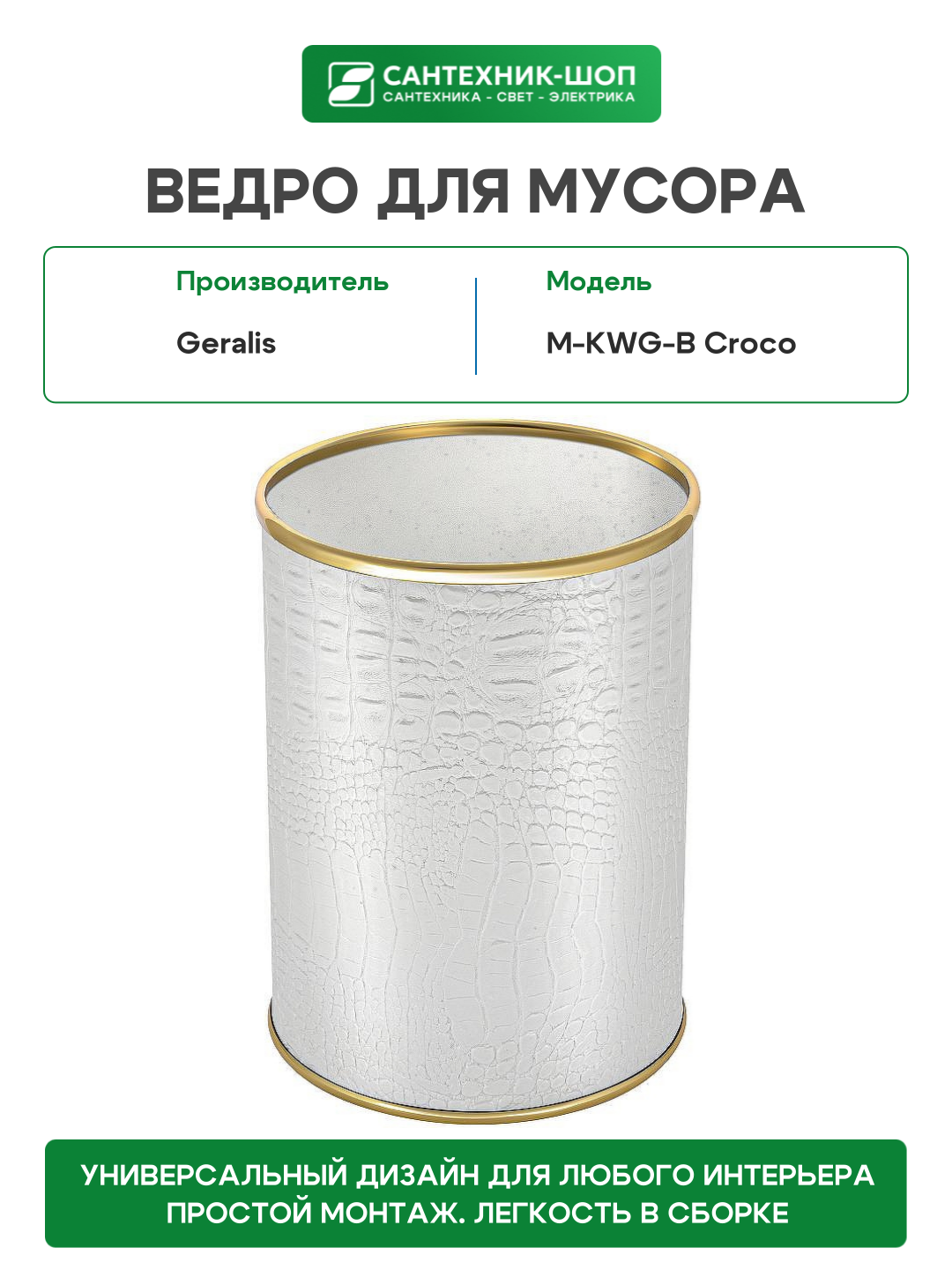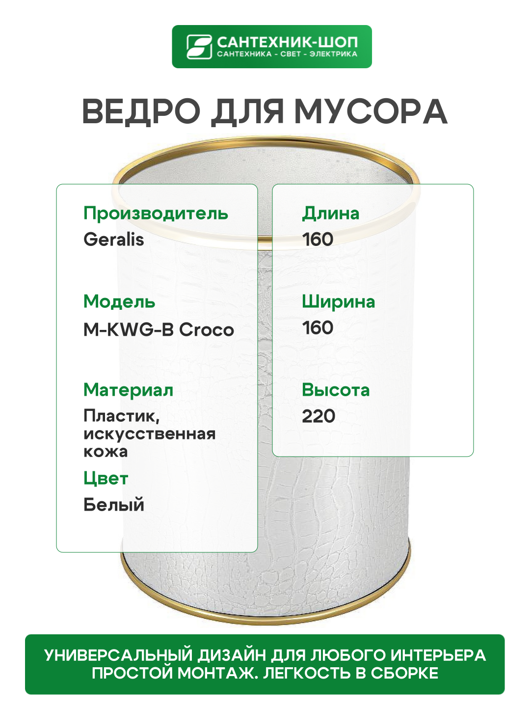 Купить Ведро для мусора Geralis M-KWG-B Croco Белое, кант Золото, 3 с доставкой по всей России. Ведро для мусора Geralis M-KWG-B Croco Белое, кант Золото, 3: сравнение цен, характеристики, фото, актуальное наличие и цены.