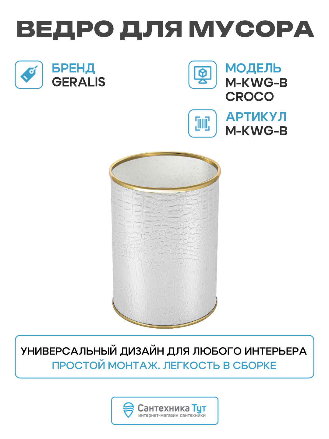 Купить Ведро для мусора Geralis M-KWG-B Croco Белое, кант Золото, 3 л, современный стиль с доставкой по всей России. Ведро для мусора Geralis M-KWG-B Croco Белое, кант Золото, 3 л, современный стиль: сравнение цен, характеристики, фото, актуальное наличие и цены.