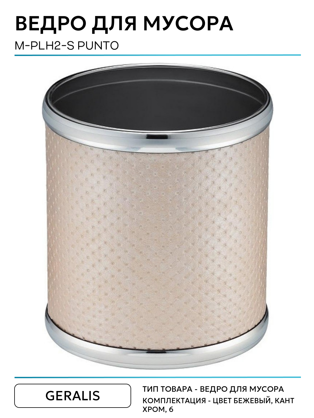Ведро для мусора Geralis M-PLH2-S Punto цвет Бежевый, кант Хром, 6 л: сравнение цен, характеристики, фото, актуальное наличие и цены.
