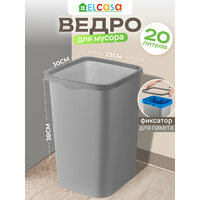 Купить Ведро для мусора с фиксатором 20 л 30х23,2х38,3 см El Casa Тандем, серый металлик/серый с доставкой по всей России.