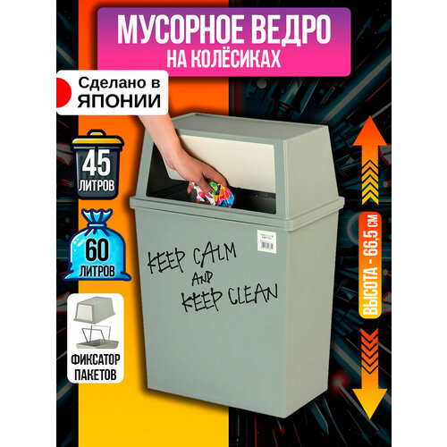 Ведро для мусора с крышкой на колесиках 45 л 45*27,5*66,5 см, 228345, HEIWA: сравнение цен, характеристики, фото, актуальное наличие и цены.