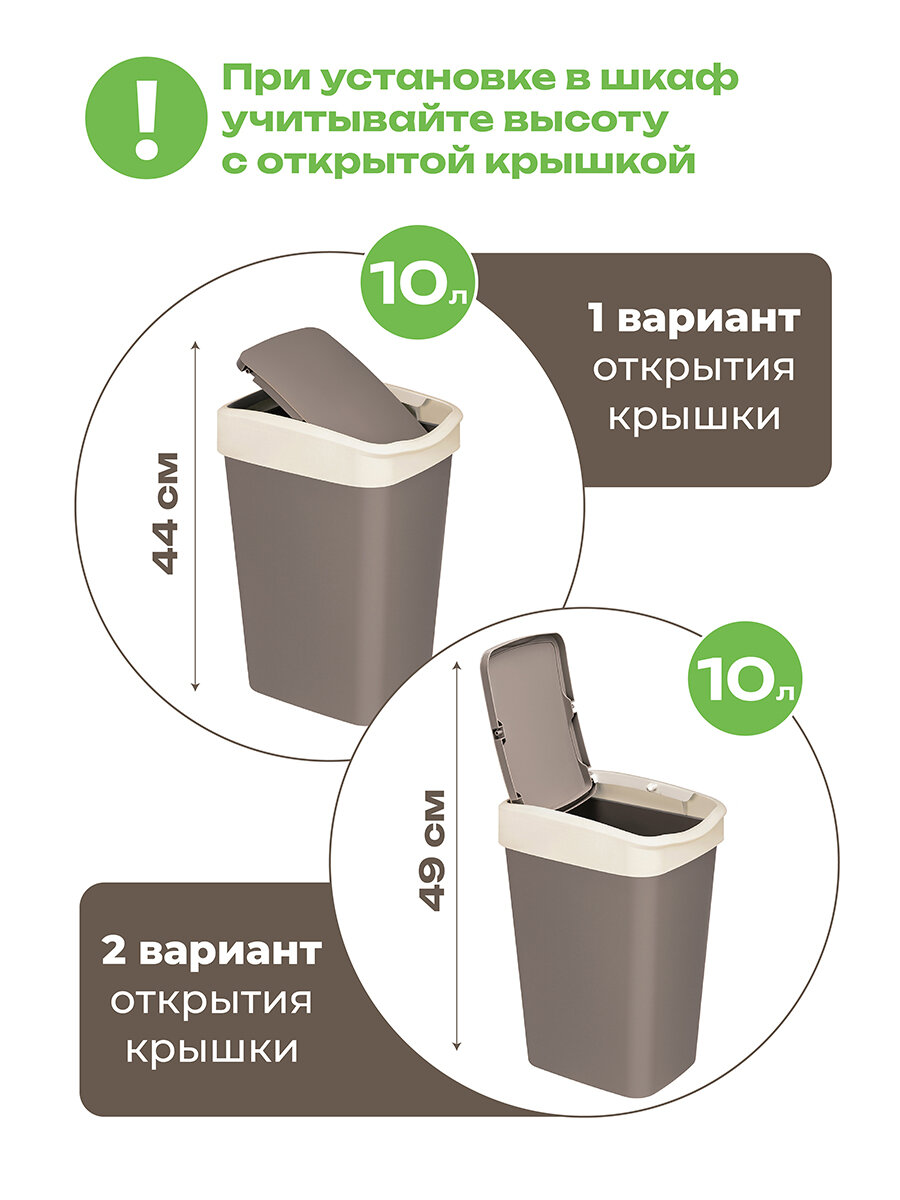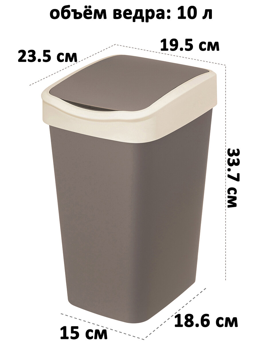 Ведро для мусора с подвижной крышкой 10 л EL Casa Тандем, 23,5х19,5х33,7 см, шоколад/слоновая: сравнение цен, характеристики, фото, актуальное наличие и цены.
