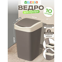 Купить Ведро для мусора с подвижной крышкой 10 л EL Casa Тандем, 23,5х19,5х33,7 см, шоколад/слоновая с доставкой по всей России.