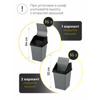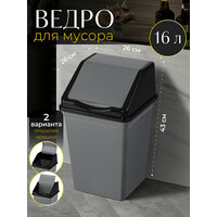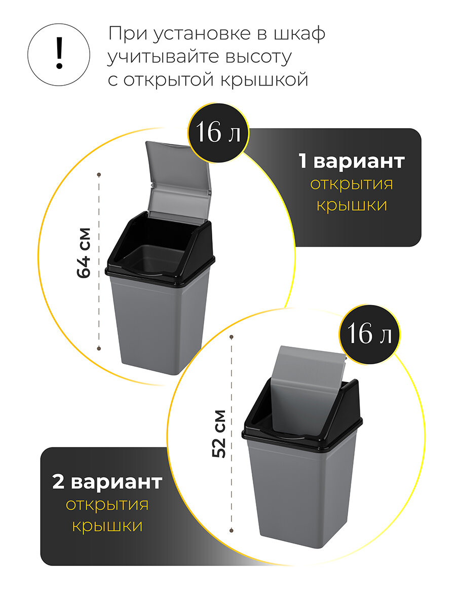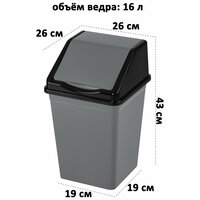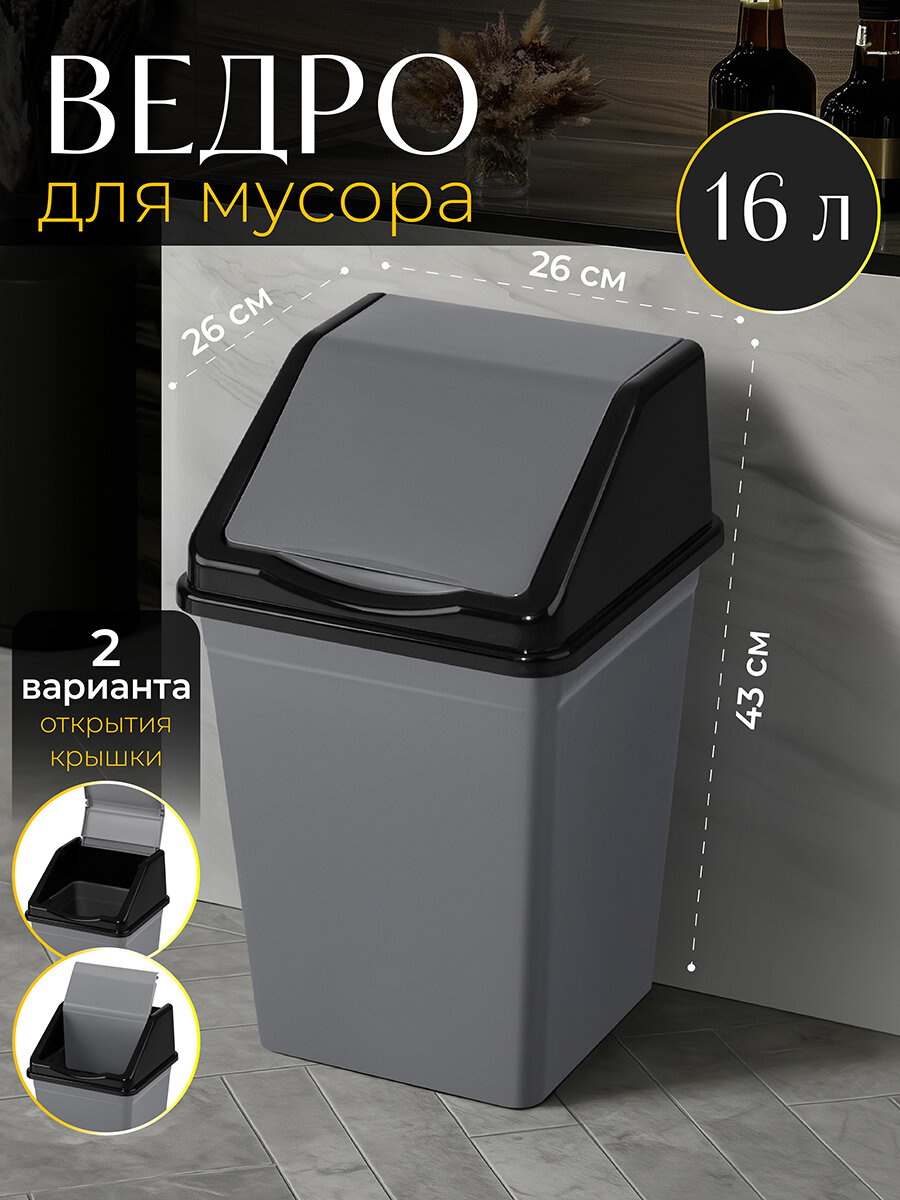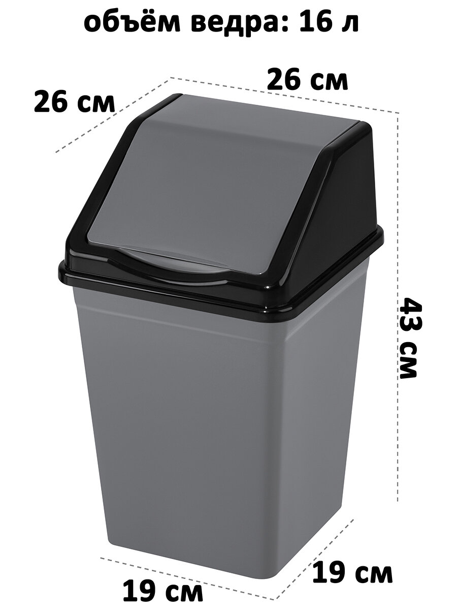 Ведро для мусора с подвижной крышкой 16 л квадратное EL Casa, серый/черный, 26х26х43 см: сравнение цен, характеристики, фото, актуальное наличие и цены.