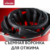 Ведро с насадкой для отжима швабры Вишмоп от немецкого бренда Виледа предназначено для выжимания ленточных швабр. Оно изготовлено из крепкого, утолщенного пластика и обеспечивает интенсивный отжим благодаря специальной насадке с технологией Power Press. Ведро подходит для отжима любых ленточных швабр (не только бренда Vileda).