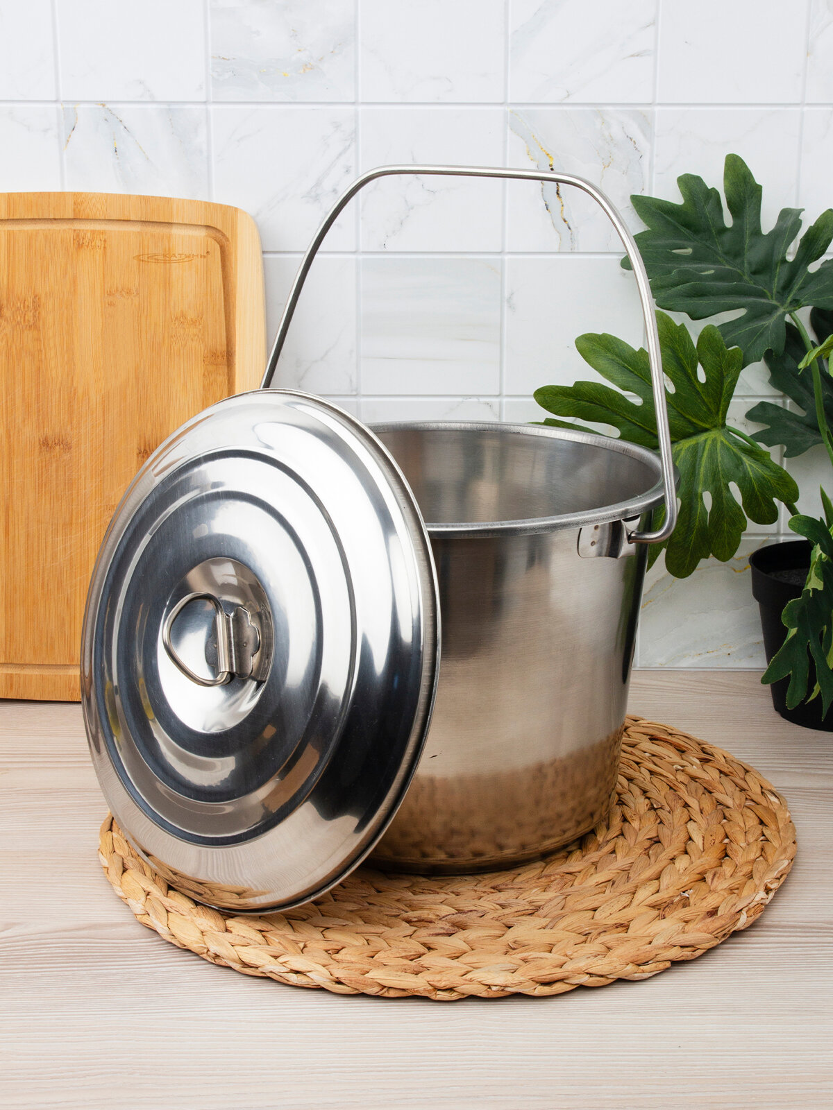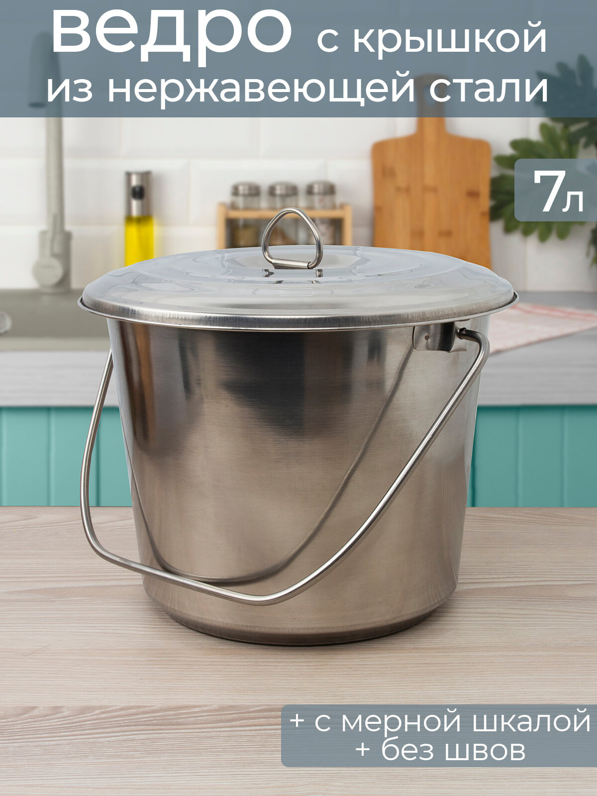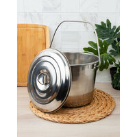 Объём: 7 л Цвет: Хромированный Форма: Цилиндрическая Высота, см: 22 Объём, л: 7 Диаметр верхней части, см: 29 Рисунок: Нет Крышка: Да Материал: Нержавеющая сталь Отжим: Нет Слив (носик): Нет Состав: Нержавеющая сталь Примечание: В наименовании указан полный объём с замером до края. Полезный объём будет отличаться в меньшую сторону от указанного.