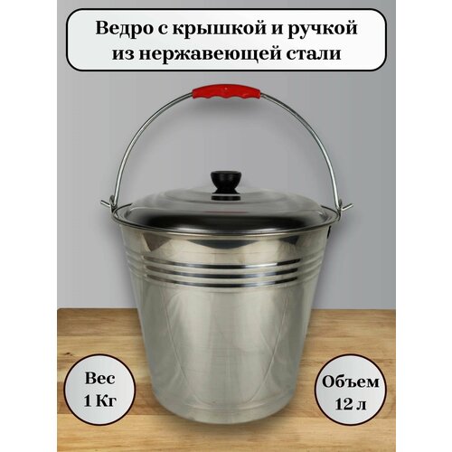 Ведро из нержавеющей стали, объем 12л, с крышкой и эргономичной ручкой