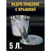 Купить Ведро из нержавеющей стали, с крышкой, 5 литров, (Индия), AISI 202 с доставкой по всей России.