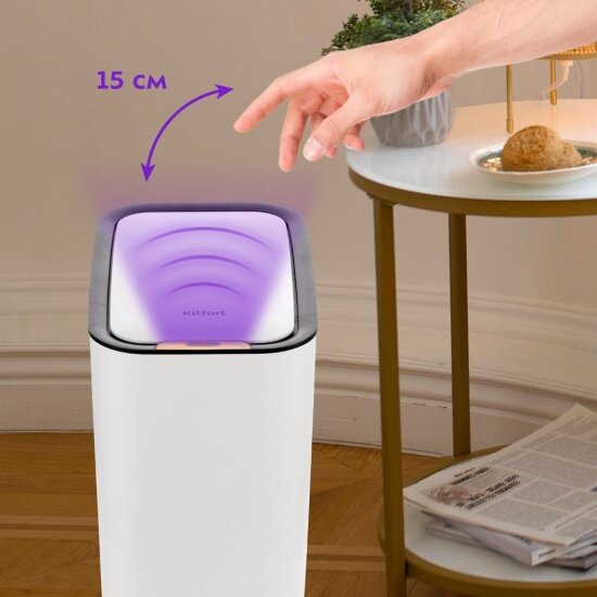 Сенсорное мусорное ведро КТ-6019 — это компактная корзина для мусора с функцией бесконтактного открытия крышки. Его удобно поставить в кабинет, в комнату или в санузел, чтобы выбрасывать мелкий мусор. Сенсорное мусорное ведро оснащено инфракрасными датчиками. Такое ведро открывается и закрывается автоматически и его не нужно касаться при выбрасывании мусора. Датчики ведра КТ-6019 расположены на крышке сверху. Через 5 секунд крышка закрывается. Также откидная крышка открывается при нажатии на кнопку «Открыть» и закрывается при нажатии на кнопку «Закрыть». Крышка автоматически закроется через 1,5 минуты после нажатия на кнопку «Открыть». Внутри мусорного ведра находится прижимное кольцо, благодаря которому удобно устанавливать в ведро пакеты для мусора. Ёмкость ведра 8 литров. Устройство работает от 2 батареек типа АА, которых хватает на долгое время. Батарейки в комплект не входят. Пластиковое ведро ёмкостью 8 л легко очистить и помыть при необходимости. Своевременно очищайте внутреннее ведро от мусора во избежание появления неприятного запаха. Чтобы выбросить мусор, вам больше не нужно поднимать крышку или нажимать на педаль. Достаточно просто провести рукой над датчиком на высоте 15 см. КТ-6019 выполнено в светлом минималистичном дизайне и легко впишется в интерьер вашего дома.