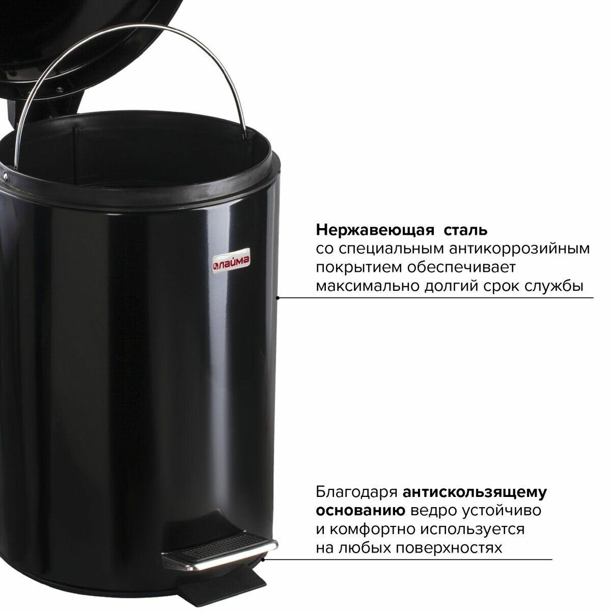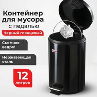 Ведро-контейнер для мусора (урна) с педалью LAIMA Classic , 12 л, черное, глянцевое, металл, со съемным внутренним ведром, 602850: сравнение цен, характеристики, фото, актуальное наличие и цены.