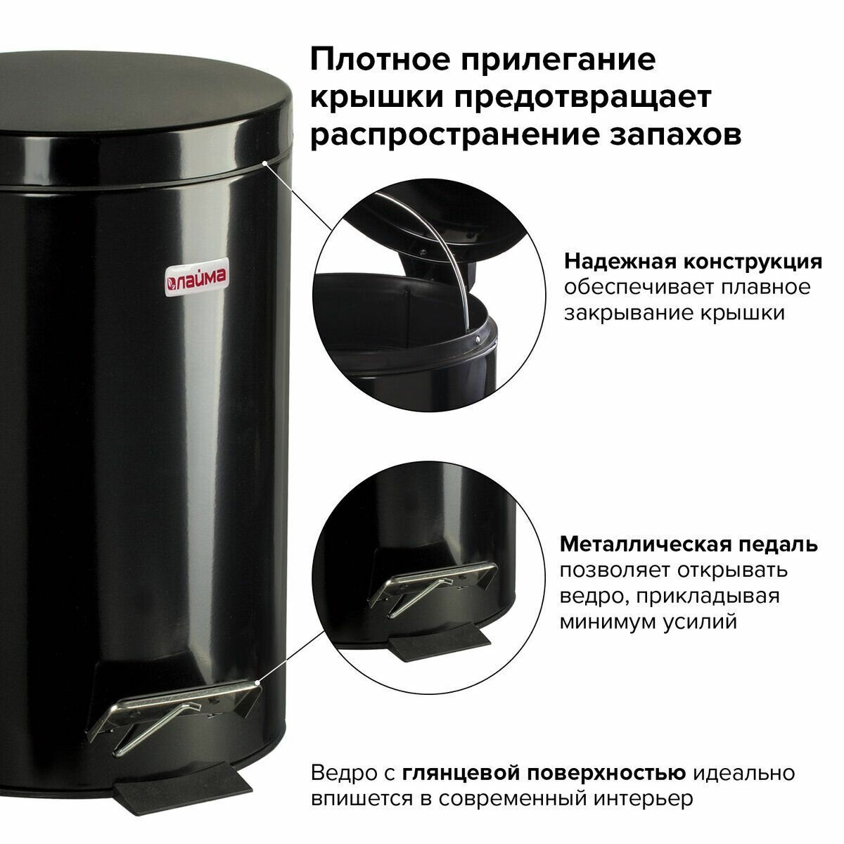 Купить Ведро-контейнер для мусора (урна) с педалью LAIMA Classic , 12 л, черное, глянцевое, металл, со съемным внутренним ведром, 602850 с доставкой по всей России.