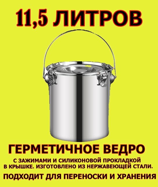 Ведро контейнер с зажимами (клипсами) нержавеющая сталь, с крышкой, герметичное ведро. 11,5 литров: сравнение цен, характеристики, фото, актуальное наличие и цены.