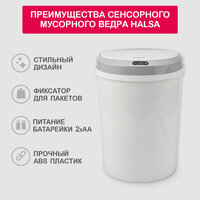 Ведро-контейнер сенсорное мусорное автоматическое для кухни/туалета/сбора отходов/дома/офиса с крышкой/индикатором разряда батареи и датчиком движения, объем 12 литров HALSA: сравнение цен, характеристики, фото, актуальное наличие и цены.