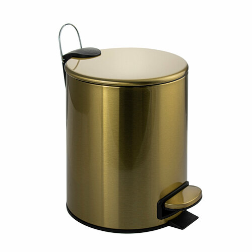Купить Ведро круглое, 5л, с микролифтом, из нержавеющей стали, с педалью, с плоской крышкой, цвет золото, санакс с доставкой по всей России.