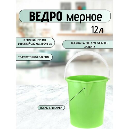 Ведро мерное12л. пищевое пластиковое мерное с носиком без крышки (арт. крышки 425646548)