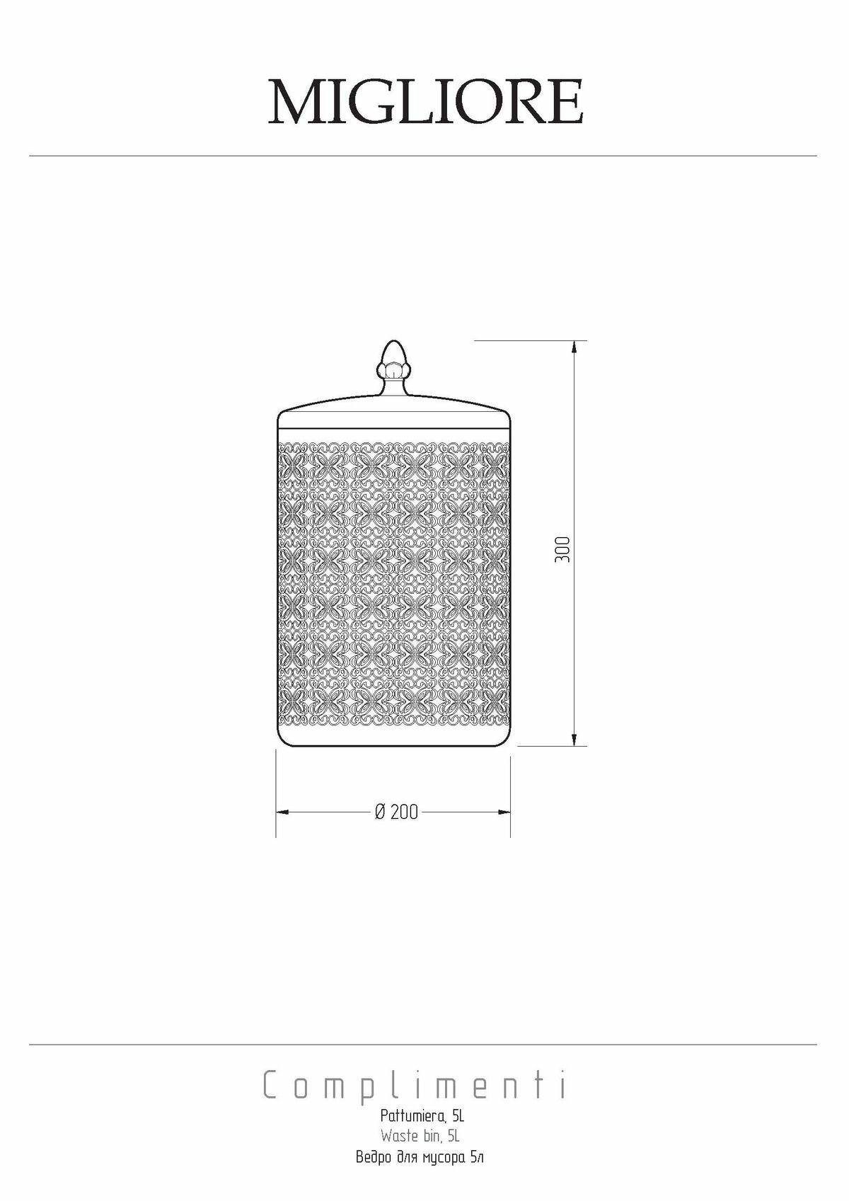 COMPLEMENTI Ведро мусорное ажурное 5л, D20, H30 см, бронза