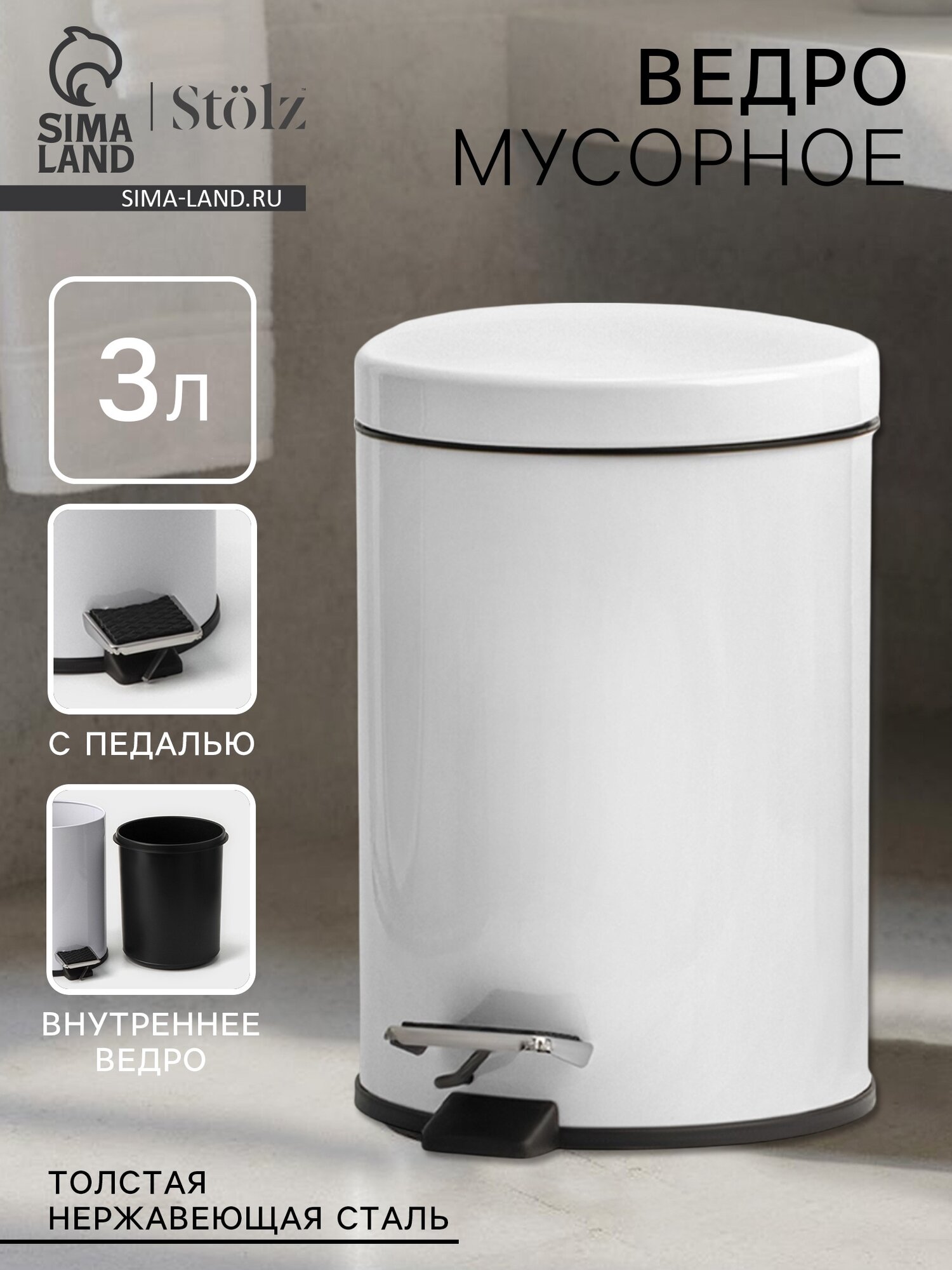 Ведро мусорное с педалью Stölz, 3 л, нержавеющая сталь, белое: сравнение цен, характеристики, фото, актуальное наличие и цены.