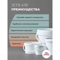 Ведро пластиковое jetb 478 с плотно прилегающей крышкой объемом 500 мл. Пластиковая баночка 0,5 л изготовлена из экологически чистого полипропилена (пищевого пластика), поэтому может быть использовано для пищевых продуктов, в хозяйстве и быту и в производстве. Пластмассовое ведерко оснащено короной жёсткости и пломбой первого вскрытия. Материал пластикового контейнера устойчив к воздействию высоких и низких температур. Пищевая тара не пропускает посторонние запахи и влагу. Ведро строительное подходит для хранения остатков неиспользованного клея, лака или краски. Садовое ведро используется для сбора плодов урожая - свежих ягод (малины, клубники, голубики, земляники). Пищевое ведро применяется как кадка для фасовки квашеной капусты, морковки по-корейски, морской капусты и грибов. В пчеловодстве используется как ведро для меда. На кухне маленькое прозрачное ведро отлично подойдет в качестве емкости для хранения майонеза или кетчупа, мороженого или любимого варенья, воды или льда, сыпучих продуктов. Набор баночек для специй и приправ сохранят вкус и аромат продукта, а также воспрепятствуют проникновению влаги, жучков и пыли извне. Пластиковая посуда облегчает процесс заморозки и хранения ягод и овощей в морозилке. Ведро хозяйственное подходит для хранения порошка и моющих средств. Широкое распространение герметичное ведро с крышкой имеет и в туристических целях: это и ведро для рыбалки (рыболовное ведро) и контейнер для пикника. Ведро декоративное можно использовать как органайзер для хранения разных мелочей и маленьких деталей. Ведерки надежно упакованы, не повредятся во время доставки. Пластмассовая упаковка Джокей станет вашим незаменимым помощником, облегчит повседневные задачи и поможет вам организовать жизнь и работу! Около 6 тыс. клиентов доверяют нашим решениям в упаковке и используют их изо дня в день в качестве средства хранения и транспортировки.