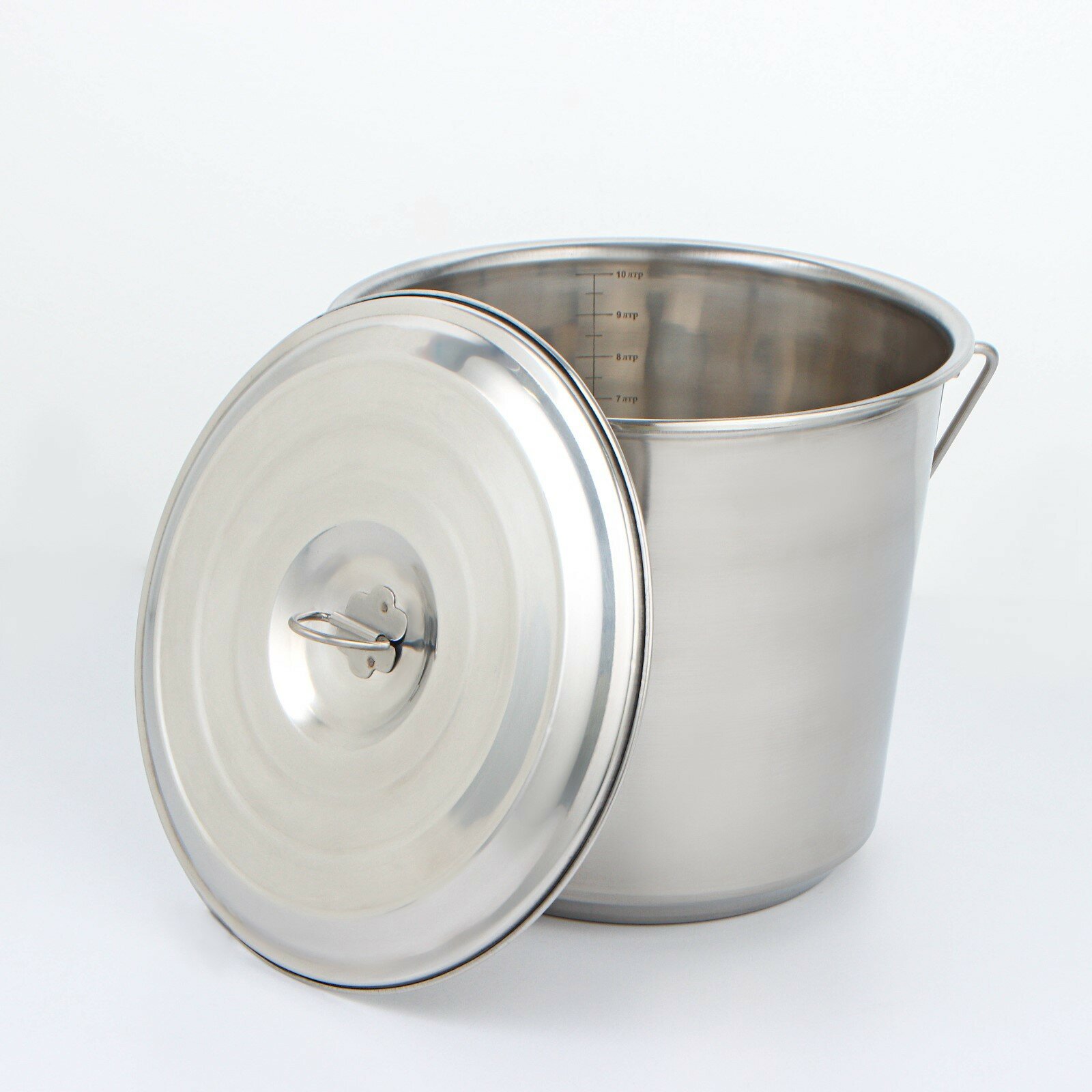 Ведро с крышкой, 10 л, мерная шкала, нержавеющая сталь. Крышка: Да. Материал: Нержавеющая сталь. Можно оставлять зимой на улице: Нет. Объём, л: 10. Отжим: Нет. Размер упаковки: 29 см x 34 см x 25 см. Рисунок: Нет. Слив (носик): Нет. Страна производителя: Индия. Температурное ограничение: Нет. Форма: Цилиндрическая. Цвет: Хромированный. ---.(7306270)