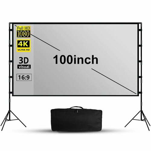Экран весит всего 7-8 фунтов, легко складывается и помещается в прилагаемую сумку размером 7.5x15.74 дюйма. Благодаря компактным размерам его удобно брать с собой в поездки или на кемпинг. Экран можно использовать для домашнего кинотеатра, на мероприятиях на открытом воздухе, в школах, офисах, на свадьбах и в церквях.