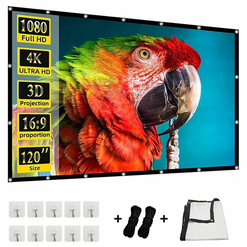 Широкое применение: В комплекте есть верёвки, что упрощает использование экрана на открытом воздухе, в таких местах, как сад или задний двор. Он идеально подходит для использования на улице. Для домашнего кинотеатра или офиса рекомендуем рассмотреть другие продукты из нашего ассортимента.