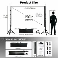 Экран для проектора весит от 7 до 19 фунтов в зависимости от размера и легко складывается в прилагаемую сумку (размер 32x7.9x5.5 дюймов). Благодаря компактным размерам, экран удобно брать с собой в поездки или на отдых. Он идеально подходит для использования в домашних кинотеатрах, на открытых мероприятиях, в школах, офисах, на свадьбах или в церквях.