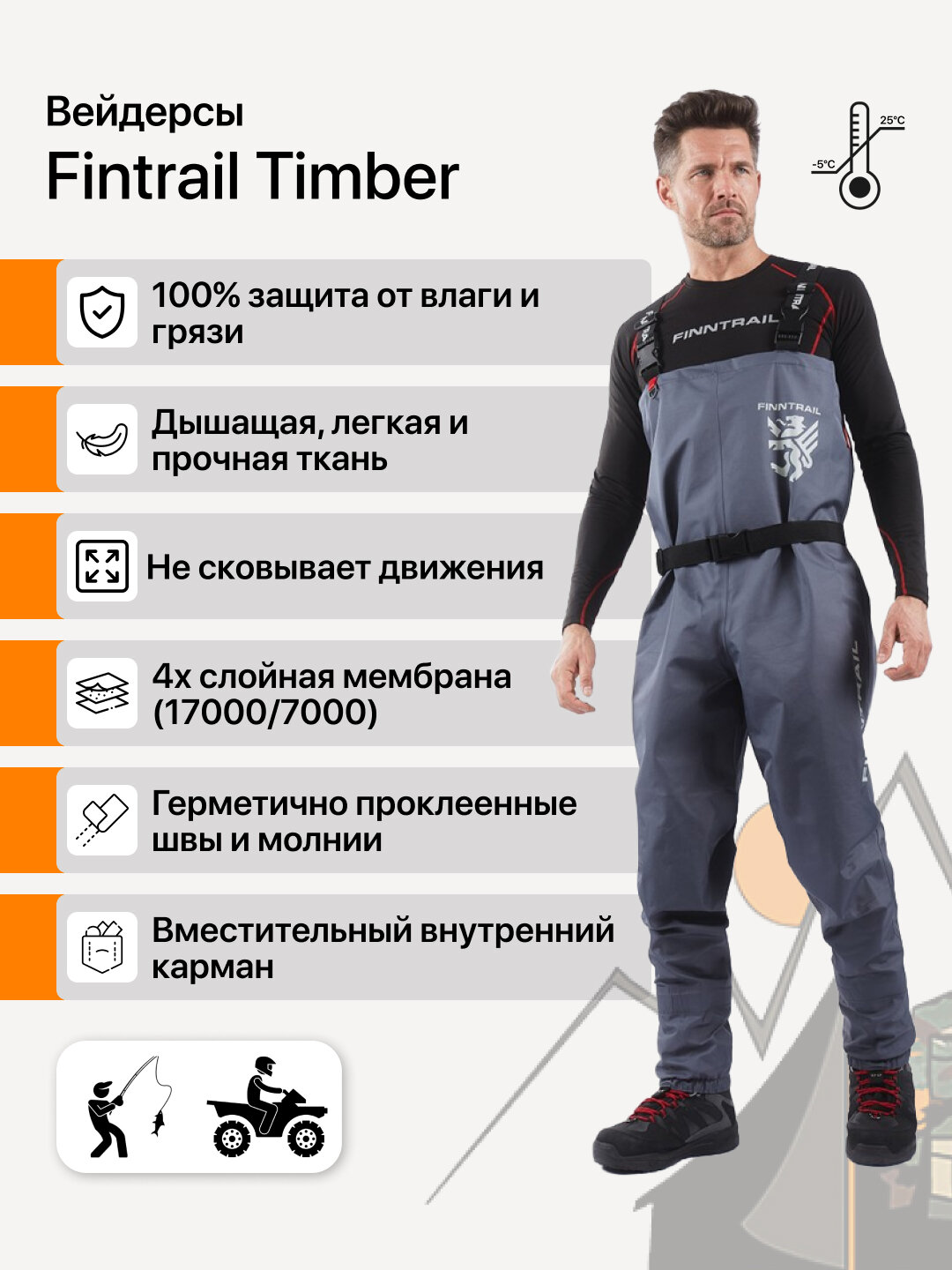 Купить Вейдерсы мембранные Timber с неопреновыми носками непромокаемые штаны для рыбалки и квадроцикла с доставкой по всей России.
