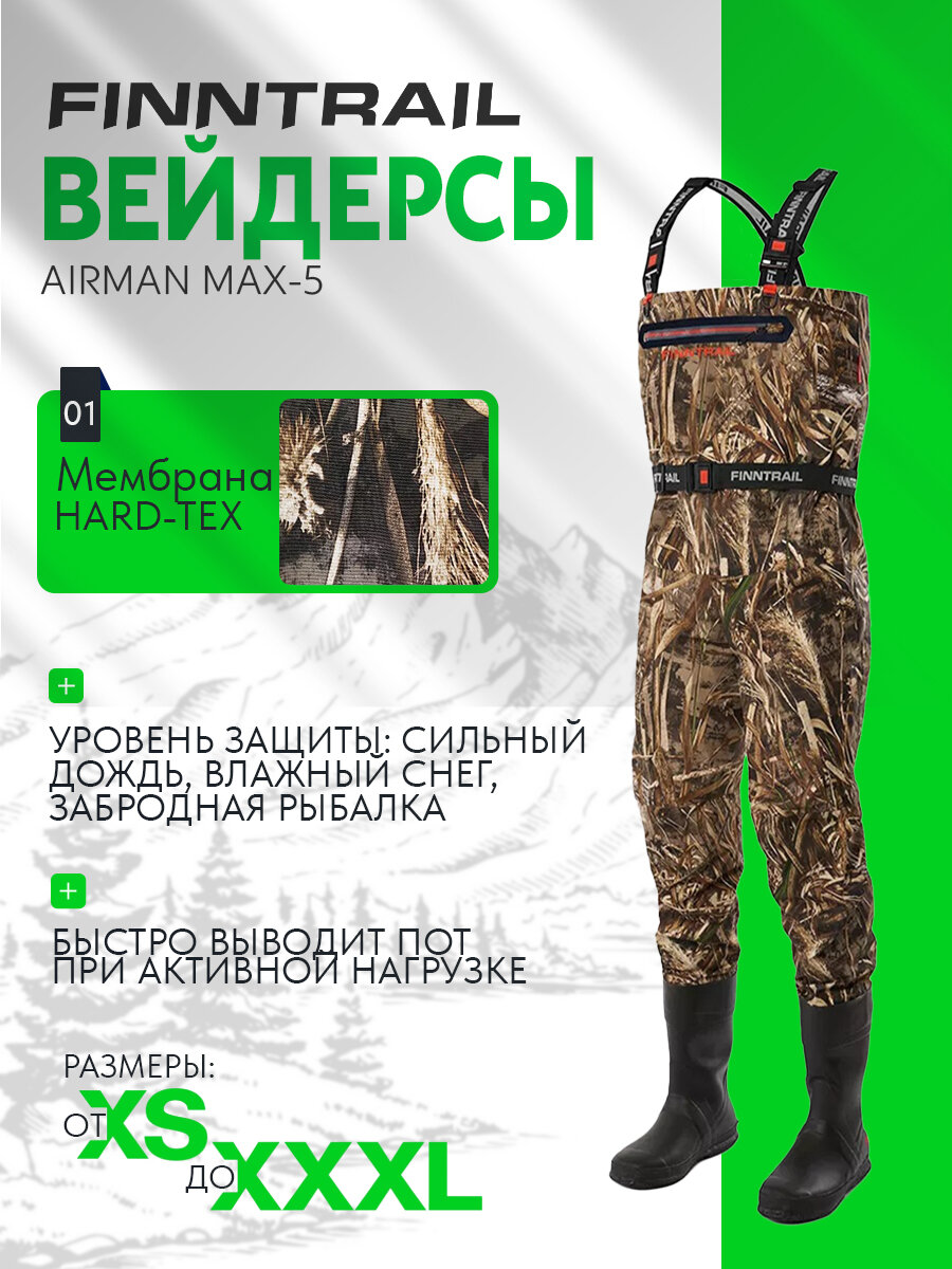 Купить Вейдерсы с сапогами Finntrail Airman 5260, забродные штаны непромокаемые, Max-5 (10(43)M) с доставкой по всей России.