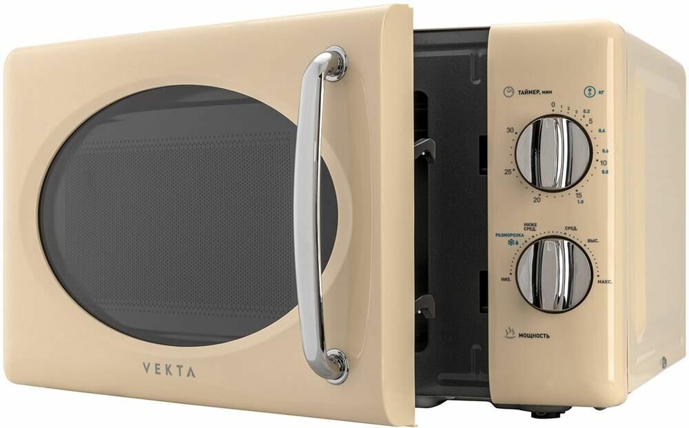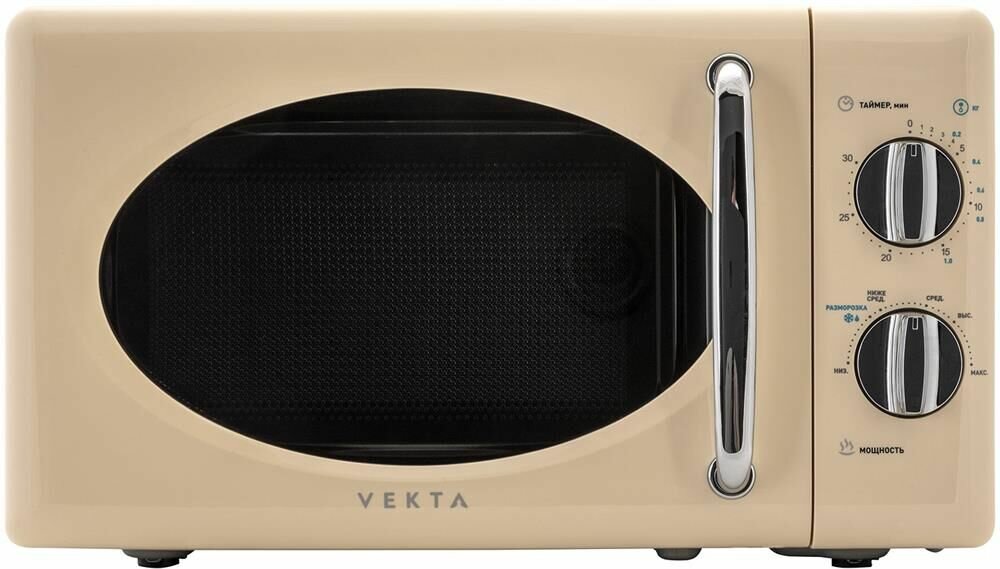 Модель - MS720GBC, Модель СВЧ VEKTA – сочетание функциональности и современного дизайна. Красивый беевый оттенок корпуса подойдет к любому интерьеру, а привычное и понятное механическое управление не покажется сложным в обращении. Микроволновая печь станет верным помощником на кухне – в ней с легкостью можно разогреть пищу, разморозить продукты или приготовить любимое блюдо. Благодаря эмалевому покрытию внутреннюю камеру легко поддерживать в чистоте. 20 л; 700 Вт; механическое управление - 2 поворотных переключателя (мощность и время), таймер 30 мин, шкала разморозки по весу, звуковой сигнал о готовности блюда. Открытие дверцы - ручка. Цвет – бежевый (внутреннее покрытие камеры – серое, эмаль).