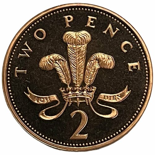Аверс ELIZABETH II DGREGFD1995Третий портрет королевы Елизаветы II обращённый вправо легенда по кругуРеверс TWO PENCE 2Знак принца Уэльского перо из трех страусиных перьев обрамляющее корону из креста и геральдической лилии разделяющее девиз с легендой вверху и номиналом внизуАвторы Raphael David Maklouf Christopher Ironside