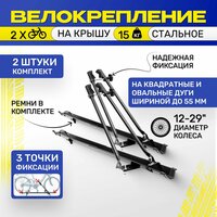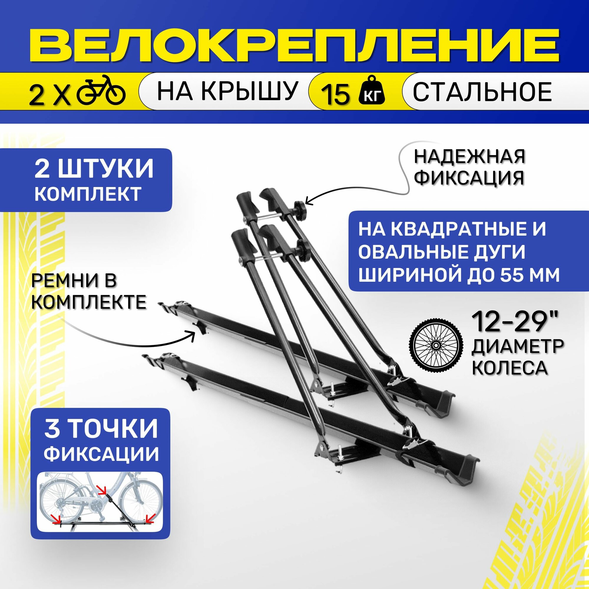 Простое и бюджетное велокрепление для перевозки велосипеда на крыше автомобиля. Устанавливается при помощи скоб.