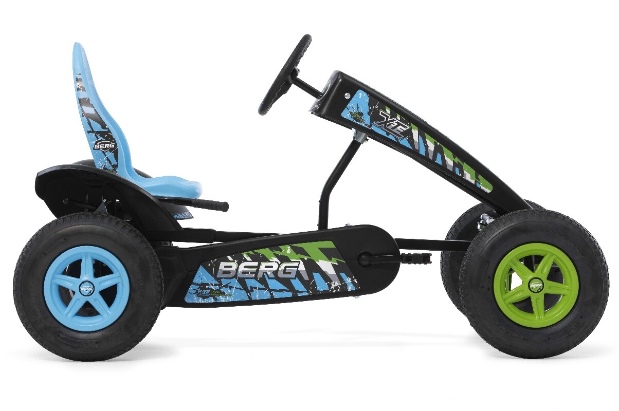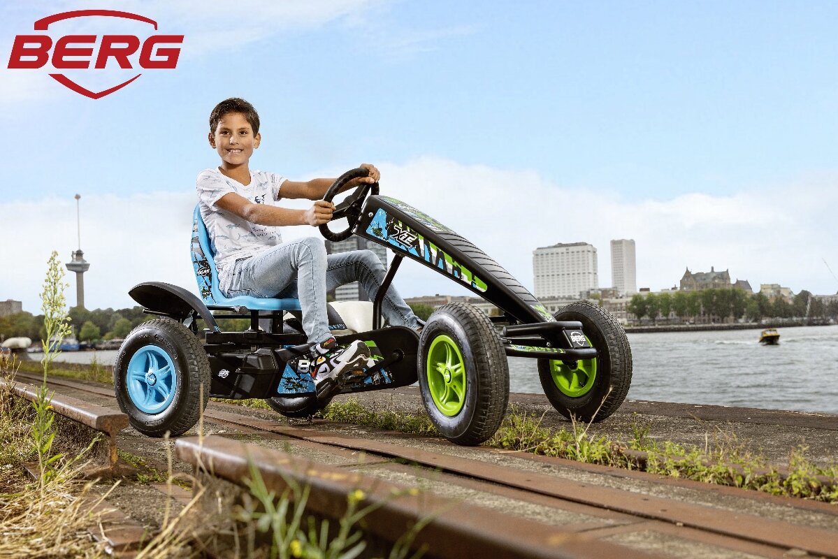 BERG разработала BERG X-ite для любителей модного картинга. Графика вдохновлена мотоциклами для мотокросса и придает картингу солидный и модный вид. Такие детали, как потрясающая наклейка, добавляют завершающий штрих этому картингу. BERG X-ite имеет качающуюся ось, поэтому картинг легко перемещается по неровной поверхности. Пневматические шины X-ite также обеспечивают гибкость и легкость хода! Сиденье легко регулируется, поэтому каждый (от 5 лет) может использовать картинг.