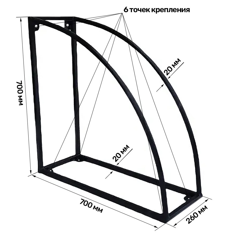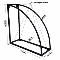 На вертикальной и горизонтальной поверхности велопарковки имеются проушины с отверстиями Ø 10,5 мм, для крепления к вертикальной и горизонтальной поверхностям (крепеж в комплект не входит).