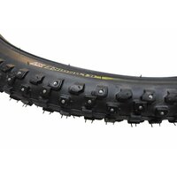 Настоящая шипованная покрышка для велосипедов должна иметь рисунок протектора шины, способный справиться с различными и порой очень сложными погодными условиями. Kenda Klondike - это надежная шипованная покрышка для удовлетворения потребностей зимнего катания. Отлично проработанный, квадратный протектор, помогает улучшить сцепление с дорогой, при этом он обладает отличной самоочищаемостью. Данная велосипедная покрышка предназначена для зимнего катания на велосипеде, 4 ряда шипов отлично держат даже на льду. Все зимние велопокрышки делают из специальной резины устойчивой к перепадам температур, без потери своих качеств.