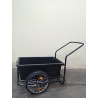 Грузоподъемность, кг: 150. Вес, кг: 12,5. Колеса : 16"х2,125 (380 х 45 мм), литой полиуретан, бескамерный. Размер съемного бака (ДлхШхВ): 710 х 430 х 340 мм, толщина кузова 3,3 мм. Объем кузова: 100л ( нанесена разметка в литрах) Тележка в сборе, мм: 116х71х74/51 (в до ручки/ до кузова) Крепление для велосипеда не входит в комплект. Удобный ударопрочный АБС пластиковый кузов с нанесенной разметкой объема в литрах, прослужит долгие годы, и в случае поломки и износа , легко заменяется на другой доступный в продаже . Легкая но в то же время прочная рама из трубы 20мм и толщиной трубы 2,2мм , позволит перемещать грузы до 150 кг. Пластиковый кузов вкладыш легко снимается и переносится за эргономичные ручки . Бескамерные колеса велосипедного типа, не требуют подкачки и позволяют с легкостью преодолевать бордюры и не ровности в городской среде, позволяет велоприцепу быть сверхманевренным и удобным. Велоприцеп "шершень" от компании викарт так же получил широкое распространение на садовых и дачных участках. Велоприцеп "шершень" пожалуй один из самых легких и маневренных на российском рынке. Кузов из ударопрочного АБС пластика не подвержен гниению и прослужит гораздо дольше , чем из оцинкованной стали. Толстостенная рама 20х2,2мм , качественная порошковая покраска , сварные элементы выполнены не в ручную , а современными сварочными комплексами. Грузоподъемность 2х колесного Велоприцепа "шершень" : Завод изготовитель установил оптимальную рабочую нагрузку 150 кг.