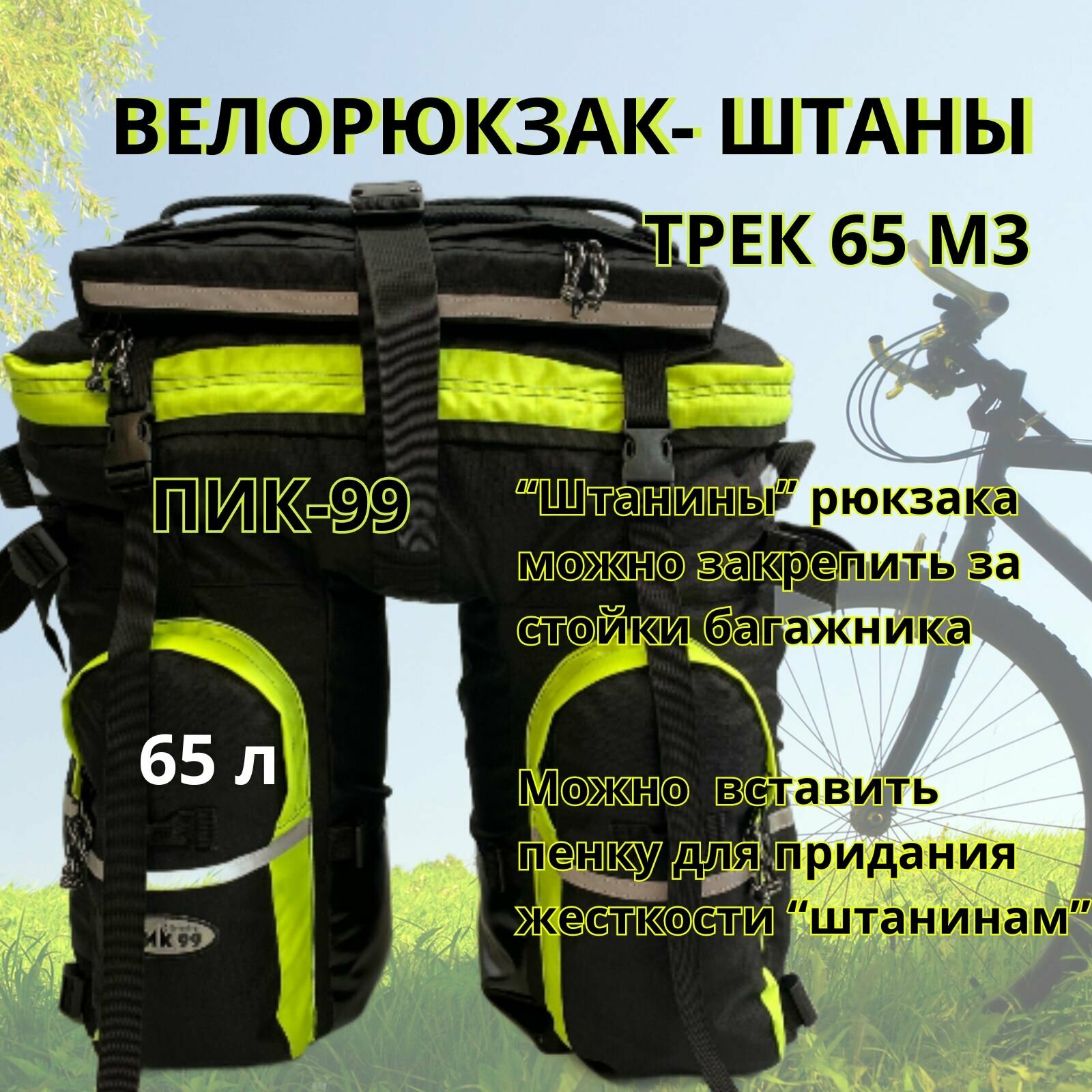 Велорюкзак-штаны на багажник, ПИК-99, ТРЕК-65М-3 оксфорд, черно-лимонный: сравнение цен, характеристики, фото, актуальное наличие и цены.