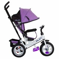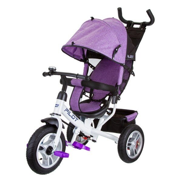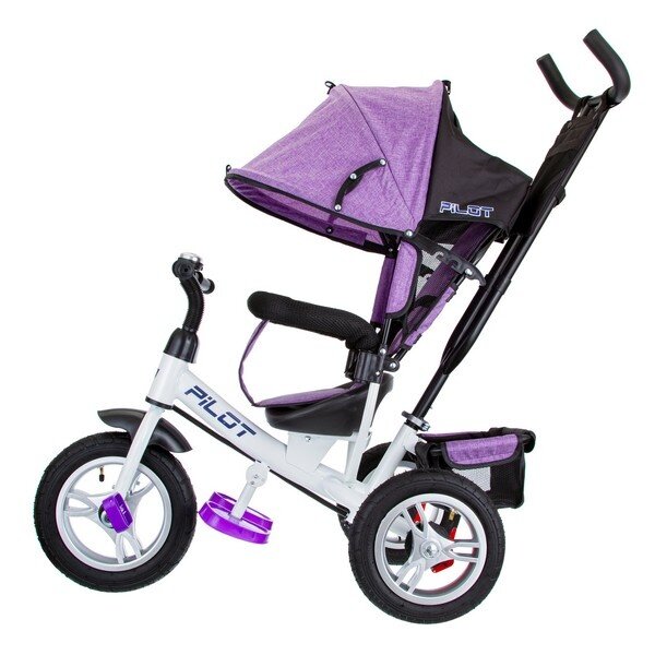 Велосипед 3-колесный, PILOT, фиолетовый, надувные колеса 12″ и 10″, сумка, коляска, крыша: сравнение цен, характеристики, фото, актуальное наличие и цены.