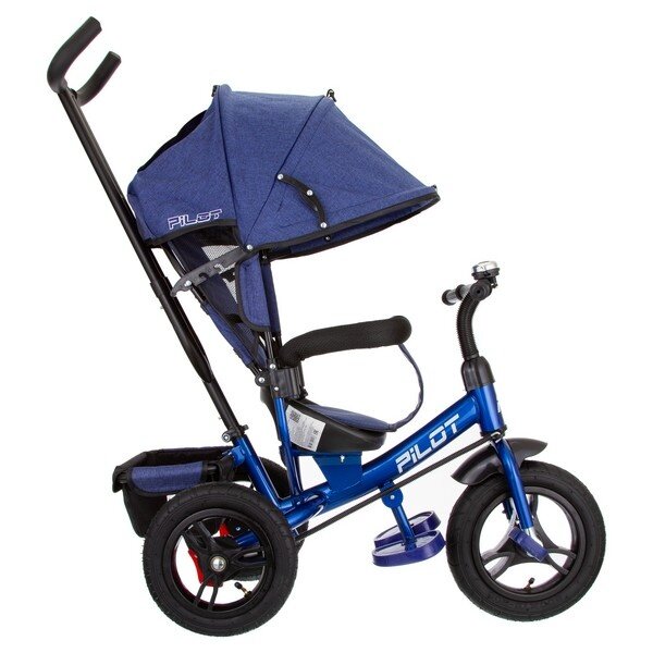 Велосипед 3-колесный, PILOT, синий, надувные колеса 12″ и 10″, сумка, коляска, крыша: сравнение цен, характеристики, фото, актуальное наличие и цены.