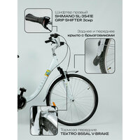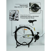 На первый взгляд, велосипед оснащен одной передачей, но на самом деле их три. Переключение передач осуществляется при помощи манетки Shimano, расположенной на руле. Это обеспечивает плавное и комфортное переключение скоростей.