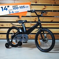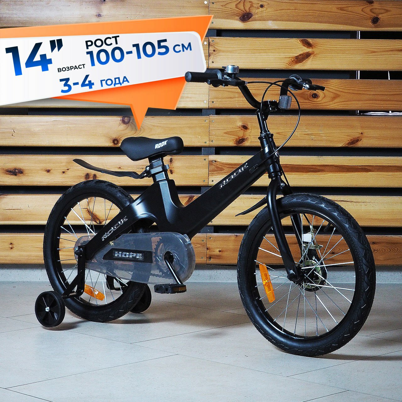 Купить Велосипед детский 14″ Rook Hope, черный, легкий ход, 3-4 лет, рост 100-105см, длина внутреннего шва ноги 40-45 см. Легкая магниевая рама, фривил. с доставкой по всей России.