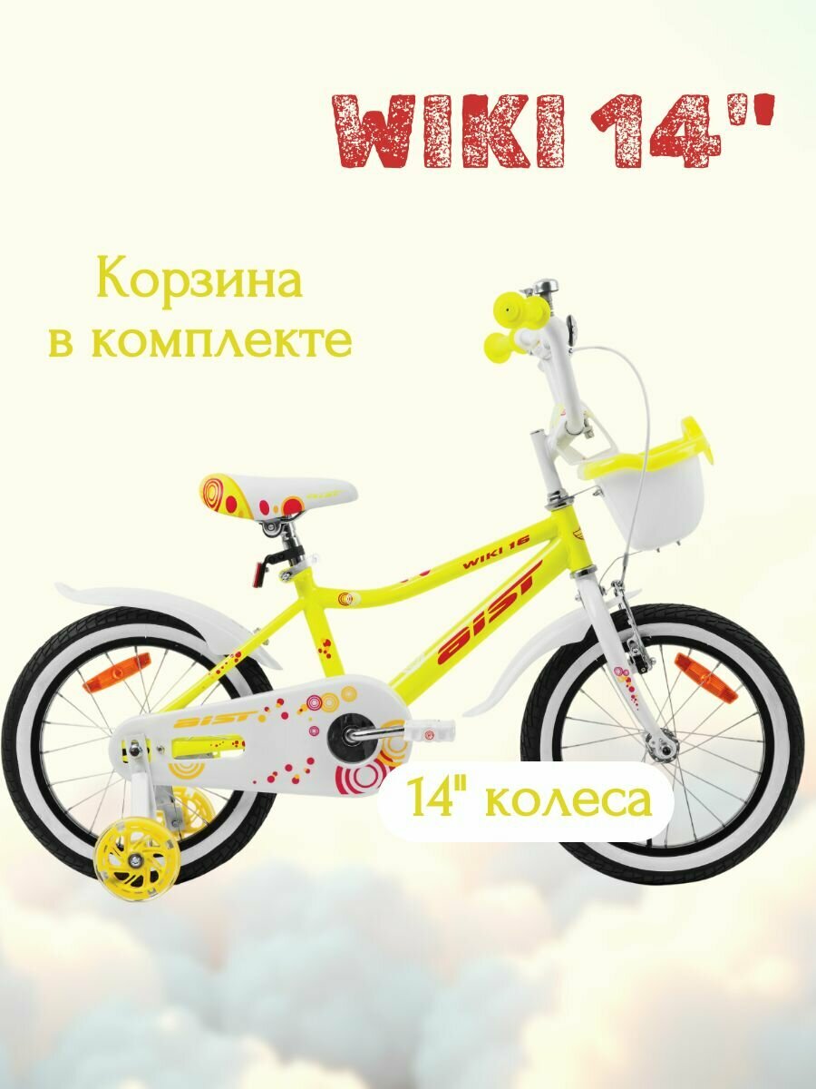 Велосипед детский для девочки AIST WIKI 14″ колеса, 1 скорость, С корзиной, яркий желтый: сравнение цен, характеристики, фото, актуальное наличие и цены.