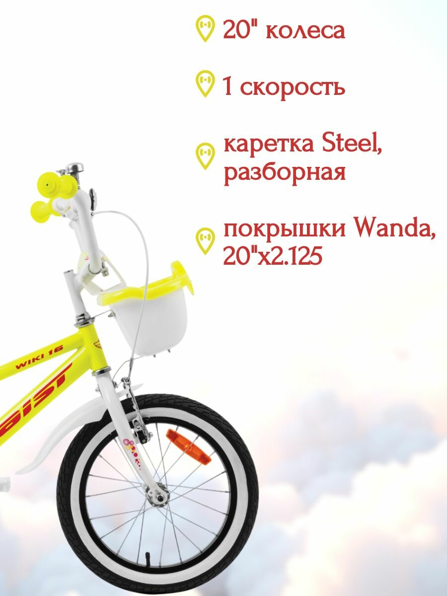 Велосипед детский для девочки AIST WIKI 20″ колеса, 1 скорость, С корзиной, яркий желтый: сравнение цен, характеристики, фото, актуальное наличие и цены.