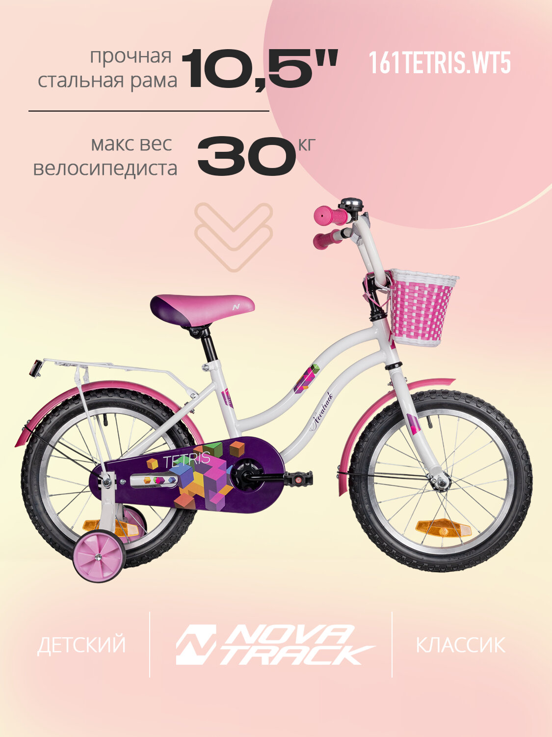Велосипед детский для девочки NOVATRACK 16″ TETRIS двухколесный, белый: сравнение цен, характеристики, фото, актуальное наличие и цены.