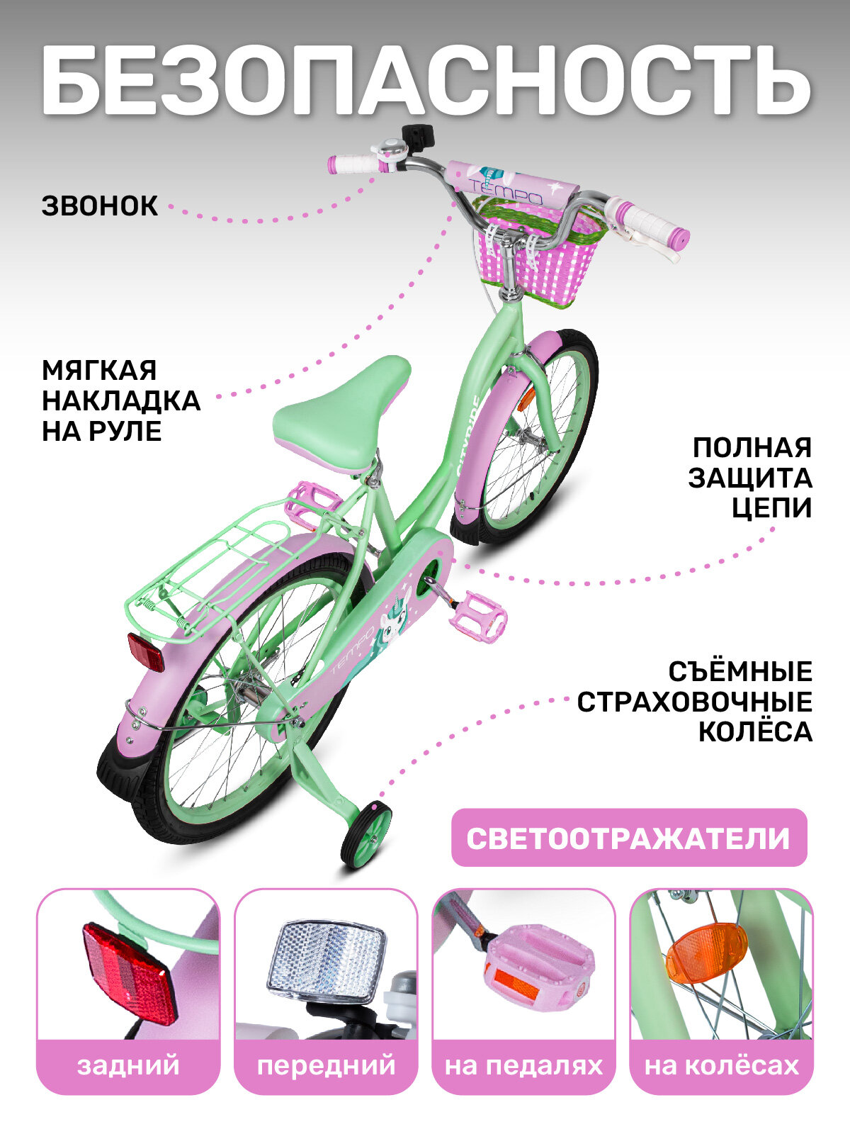 Велосипед детский двухколесный CITYRIDE TEMPO с корзинкой, радиус 20″, страховочные колеса, CR-B2-0620GNP: сравнение цен, характеристики, фото, актуальное наличие и цены.